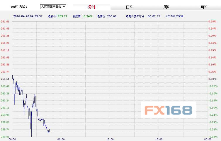 北京时间04:33,中国工商银行纸黄金下跌0.34%,报259.72元/克。
