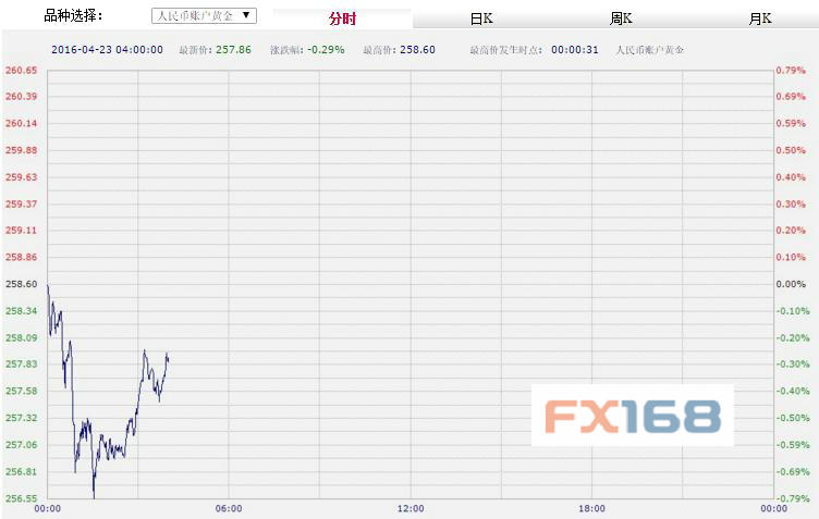 北京时间04:00,中国工商银行纸黄金下跌0.29%,报257.86元/克。