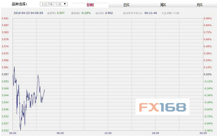 北京时间04:00,中国工商银行纸白银下跌0.28%,报3.562元/克。