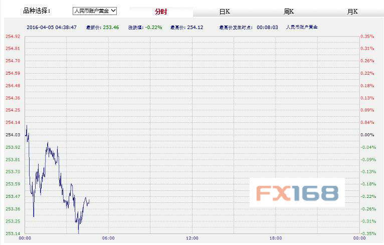 北京时间04:38,中国工商银行纸黄金下跌0.22%,报253.46元/克。