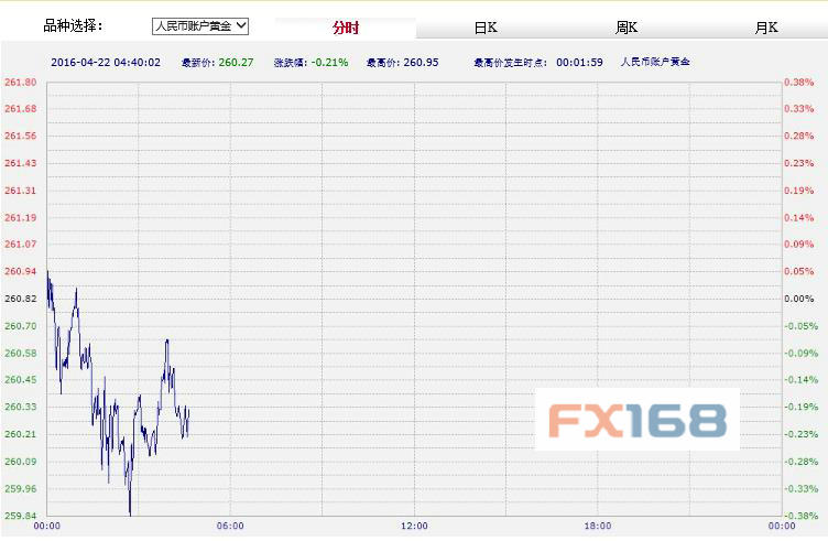 北京时间04:40,中国工商银行纸黄金下跌0.21%,报260.27元/克。
