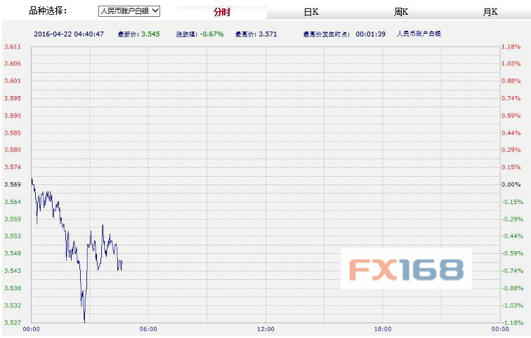北京时间04:40,中国工商银行纸白银下跌0.67%,报3.545元/克。