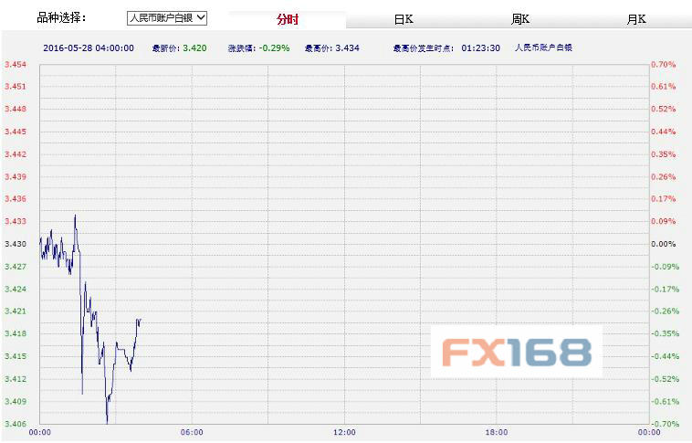 北京时间00:58,中国工商银行纸白银下跌0.12%,报3.384元/克。