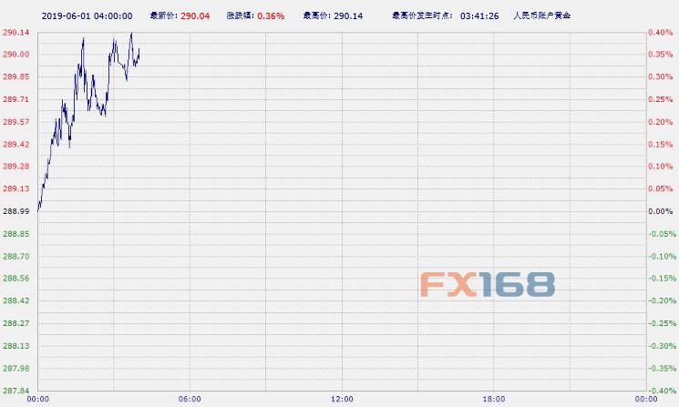 北京时间04:00,中国工商银行纸黄金上涨0.36%,报290.04元/克。