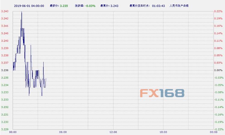 北京时间04:00,中国工商银行纸白银下跌0.03%,报3.235元/克。