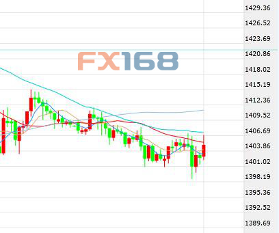 北京时间22:48,现货黄金报1405.35美元/盎司,下跌3.3美元,跌幅0.24%。
