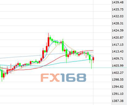 北京时间22:57,现货黄金报1411.50美元/盎司,上涨2.05美元,涨幅0.15%。