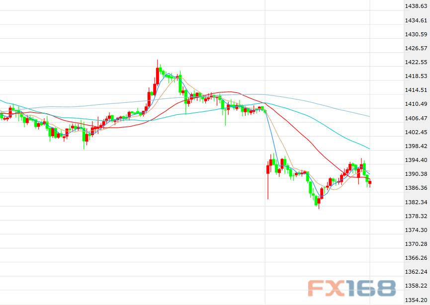 北京时间00:18,现货黄金下跌19.76美元,跌幅1.4%,报1389.31美元/盎司。