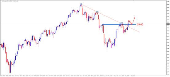 交易策略:激进的投资者可考虑59.60附近做多,止损58.00附近,止盈62.00附近。