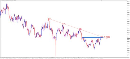 交易策略:建议投资者可考虑0.7050附近做空,止损0.7100附近,止盈0.6970附近。